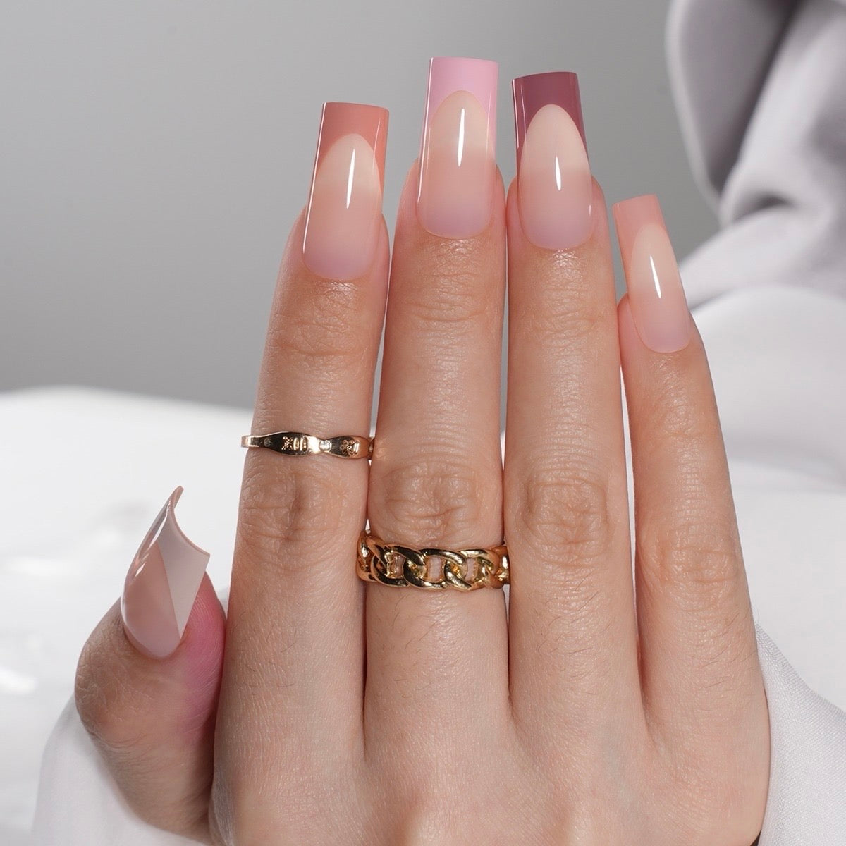 Press-Ons sind vorgefertigte Kunstnägel, die schnell und einfach mit Klebepads oder Nagelkleber angebracht werden. Sie eignen sich für kurzfristige Anlässe, halten jedoch nur 3–7 Tage.